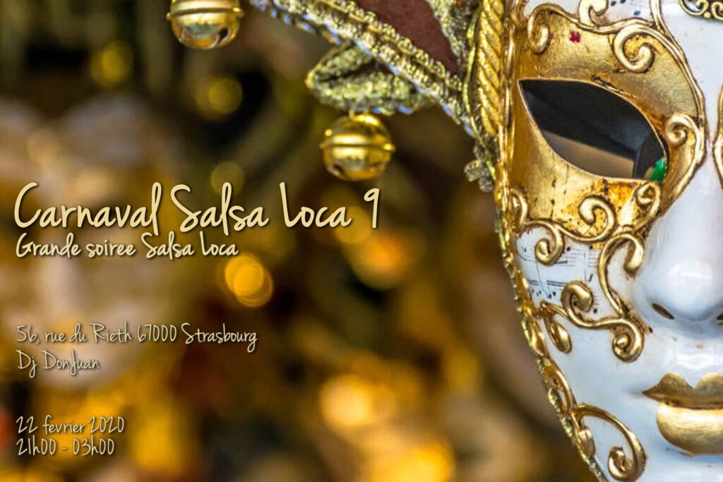??? 56 rue du Rieth 67200 Strasbourg ??? ??? CARNAVAL SALSA LOCA 9 ??? Horaire : 21h00 à 03H00 Carnet de bal : à partir de 22h30 Déguisement et/ou masque fortement recommandé PAF soirée : Entrée + 1 Gobelet + 1 Boisson : 9€ (7€ pour les adhérents Salsa Loca) Entrée sans gobelet + 1 […]